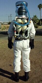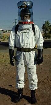 This is a space suit slated for episode two. Its made of a five gallon