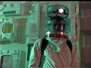 Ben in the suit, walking the halls of an alien ship.